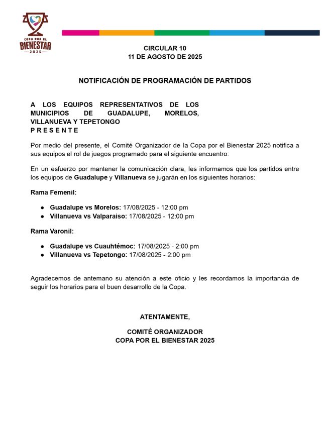 Recordatorio Importante: Tienen esta semana para entregar toda la documentación pendiente. Pueden hacerlo de dos formas: • Subir los documentos a la carpeta de Drive de su municipio. • Enviar los documentos directamente a este WhatsApp. ¡Es indispensable que incluyan la documentación completa de todos sus jugadores! Si eligen enviar por WhatsApp, nosotros nos encargaremos de subirla a su expediente. ⚠️ Fecha Límite Final para toda la documentación: 22 de junio ⚠️ Agradecemos su pronta atención y colaboración. Saludos